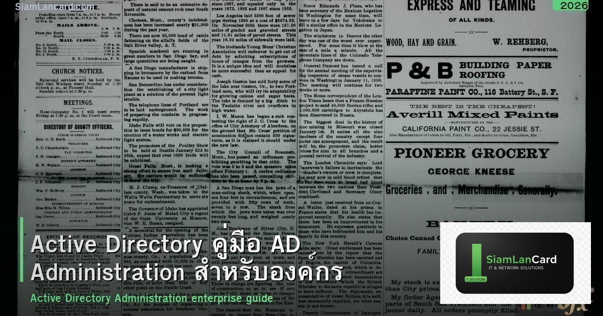 AD เป็นพื้นฐานของ IT องค์กรที่ใช้ Windows มี DC 2 ตัว ออกแบบ OU ดี ใช้ GPO บังคับ Security Backup สม่ำเสมอ หากต้องการข้อมูลเพิ่มเติม ติดตามได้ที่ SiamLanCard.com