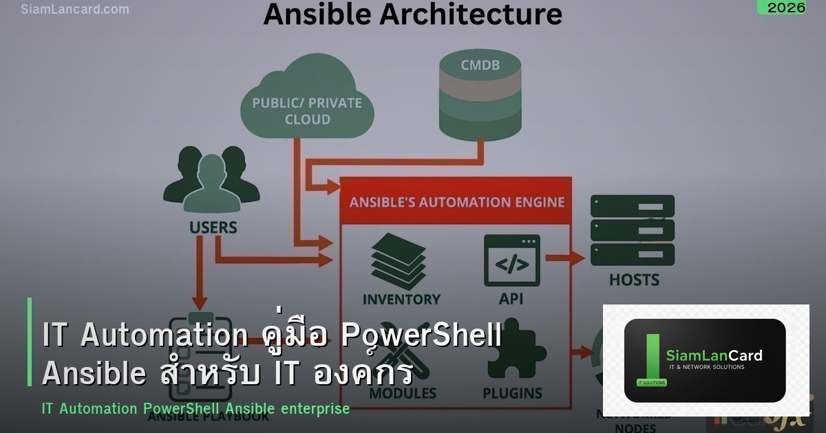 IT Automation ช่วยลดเวลา ลดความผิดพลาด และเพิ่มประสิทธิภาพ เริ่มจาก PowerShell สำหรับ Windows Ansible สำหรับ Linux Automate งานซ้ำๆ ทีละอย่าง หากต้องการข้อมูลเพิ่มเติม ติดตามได้ที่ SiamLanCard.com