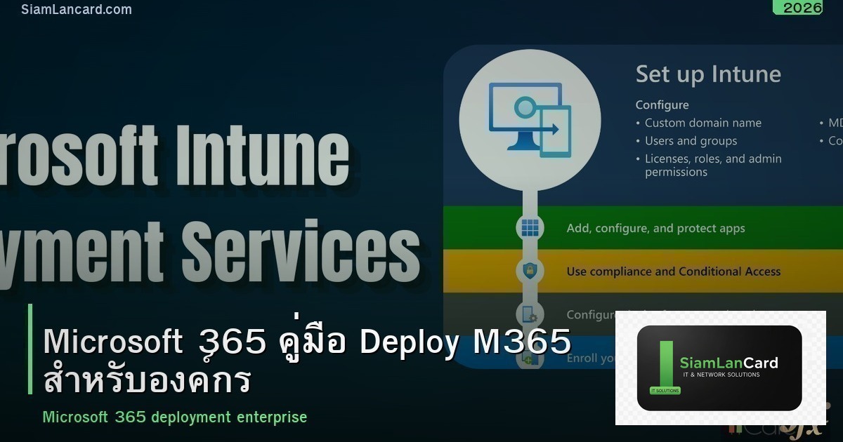 M365 รวม Email Office Teams SharePoint ไว้ในที่เดียว ลด Server ลด Maintenance เข้าถึงจากทุกที่ สิ่งสำคัญคือเปิด MFA ตั้ง Security ให้ครบ และอบรมพนักงาน หากต้องการข้อมูลเพิ่มเติม ติดตามได้ที่ SiamLanCard.com