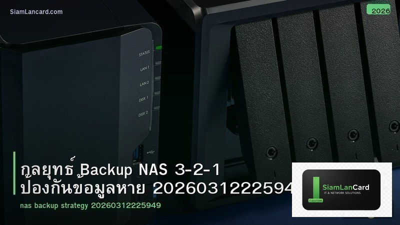 สุดท้าย สิ่งที่สำคัญที่สุดคือการ backup ข้อมูล ไม่ว่ากลยุทธ์ Backup NAS 3-2-1 ป้องกันข้อมูลหาย 20260312225949จะดีแค่ไหน hardware ทุกชิ้นมีวันเสีย ใช้กฎ 3-2-1 เสมอ: ข้อมูล 3 ชุด บน 2 media ต่างชนิด 1 ชุดอยู่ offsite เช่น backup ไปยัง Cloud หรือ NAS ที่บ้านอีกหลัง สำหรับธุรกิจ SMB ควรทดสอบ restore ข้อมูลอย่างน้อยเดือนละ 1 ครั้ง เพื่อให้มั่นใจว่า backup ทำงานถูกต้อง