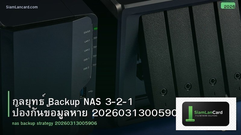 สุดท้าย สิ่งที่สำคัญที่สุดคือการ backup ข้อมูล ไม่ว่ากลยุทธ์ Backup NAS 3-2-1 ป้องกันข้อมูลหาย 20260313005906จะดีแค่ไหน hardware ทุกชิ้นมีวันเสีย ใช้กฎ 3-2-1 เสมอ: ข้อมูล 3 ชุด บน 2 media ต่างชนิด 1 ชุดอยู่ offsite เช่น backup ไปยัง Cloud หรือ NAS ที่บ้านอีกหลัง สำหรับธุรกิจ SMB ควรทดสอบ restore ข้อมูลอย่างน้อยเดือนละ 1 ครั้ง เพื่อให้มั่นใจว่า backup ทำงานถูกต้อง