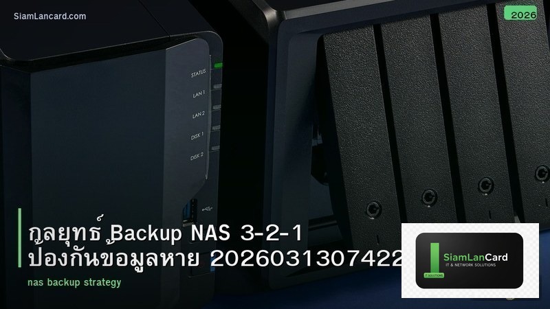 สุดท้าย สิ่งที่สำคัญที่สุดคือการ backup ข้อมูล ไม่ว่ากลยุทธ์ Backup NAS 3-2-1 ป้องกันข้อมูลหาย 20260313074226จะดีแค่ไหน hardware ทุกชิ้นมีวันเสีย ใช้กฎ 3-2-1 เสมอ: ข้อมูล 3 ชุด บน 2 media ต่างชนิด 1 ชุดอยู่ offsite เช่น backup ไปยัง Cloud หรือ NAS ที่บ้านอีกหลัง สำหรับธุรกิจ SMB ควรทดสอบ restore ข้อมูลอย่างน้อยเดือนละ 1 ครั้ง เพื่อให้มั่นใจว่า backup ทำงานถูกต้อง
