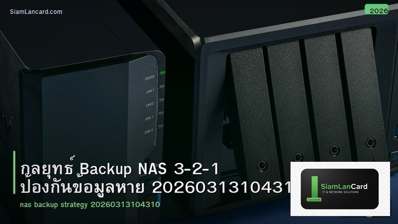 สุดท้าย สิ่งที่สำคัญที่สุดคือการ backup ข้อมูล ไม่ว่ากลยุทธ์ Backup NAS 3-2-1 ป้องกันข้อมูลหาย 20260313104310จะดีแค่ไหน hardware ทุกชิ้นมีวันเสีย ใช้กฎ 3-2-1 เสมอ: ข้อมูล 3 ชุด บน 2 media ต่างชนิด 1 ชุดอยู่ offsite เช่น backup ไปยัง Cloud หรือ NAS ที่บ้านอีกหลัง สำหรับธุรกิจ SMB ควรทดสอบ restore ข้อมูลอย่างน้อยเดือนละ 1 ครั้ง เพื่อให้มั่นใจว่า backup ทำงานถูกต้อง