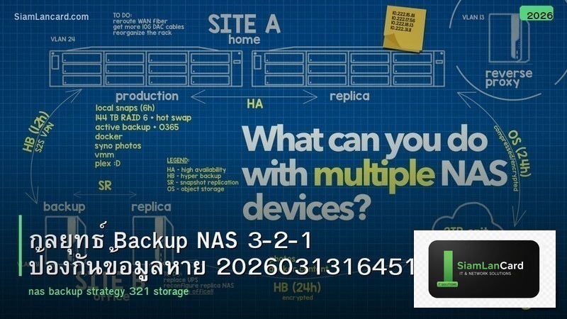 NAS (Network Attached Storage) กลายเป็นอุปกรณ์สำคัญสำหรับทั้งบ้านและ SMB ในปี 2026 ด้วยความต้องการจัดเก็บข้อมูลที่เพิ่มขึ้นจาก 4K/8K video, การ backup ข้อมูลสำคัญ และการรัน Docker container บน NAS เพื่อเป็น Home Server บทความนี้จะรีวิว กลยุทธ์ Backup NAS 3-2-1 ป้องกันข้อมูลหาย 20260313164515 อย่างละเอียด พร้อมสเปคจริง benchmark จริง ราคาไทยบาท และคำแนะนำการเลือกซื้อ
