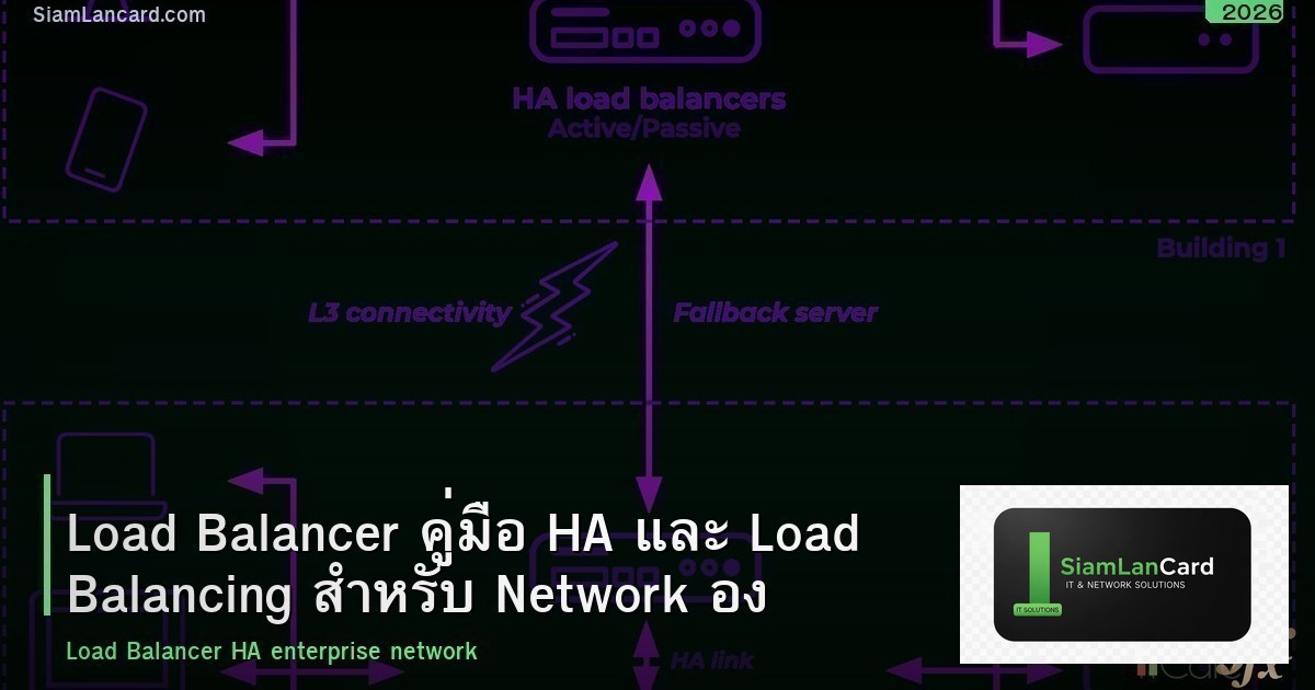 Load Balancer เป็นส่วนสำคัญของ Network องค์กร ช่วยกระจายโหลดและ Failover อัตโนมัติ สิ่งสำคัญคือ LB เองต้อง HA ตั้ง Health Check ทุก Backend และ Monitor อย่างสม่ำเสมอ หากต้องการข้อมูลเพิ่มเติม ติดตามได้ที่ SiamLanCard.com