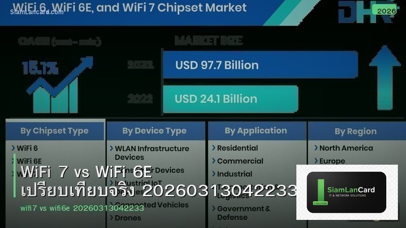 ตลาดอุปกรณ์ Networking ในไทยปี 2026 มีมูลค่ากว่า 15,000 ล้านบาท เติบโต 18% จากปีก่อน จากความต้องการ Work from Home และ Smart Office ที่เพิ่มขึ้นต่อเนื่อง ผู้ใช้ต้องการอุปกรณ์ที่เร็วขึ้น เสถียรขึ้น และรองรับอุปกรณ์จำนวนมากขึ้น บทความนี้จะรีวิว WiFi 7 vs WiFi 6E เปรียบเทียบจริง 20260313042233 อย่างละเอียด พร้อมสเปคจริง benchmark จริง ราคาไทยบาท และคำแนะนำการเลือกซื้อ