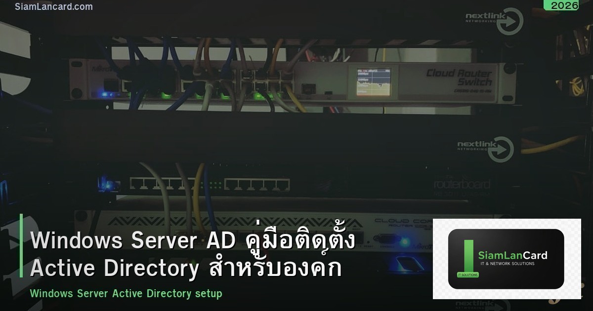 Active Directory เป็นระบบพื้นฐานที่สำคัญที่สุดสำหรับองค์กรที่ใช้ Windows Server ช่วยจัดการ User, Computer, Security Policy จากศูนย์กลาง การติดตั้งและตั้งค่าที่ถูกต้องตั้งแต่แรกจะช่วยลดปัญหาและเพิ่มความปลอดภัยอย่างมาก หากต้องการข้อมูลเพิ่มเติม ติดตามได้ที่ SiamLanCard.com